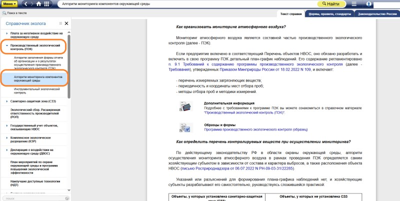 - сэкономить время на изучении актуальных требований законодательства в области мониторинга различных компонентов окружающей среды;